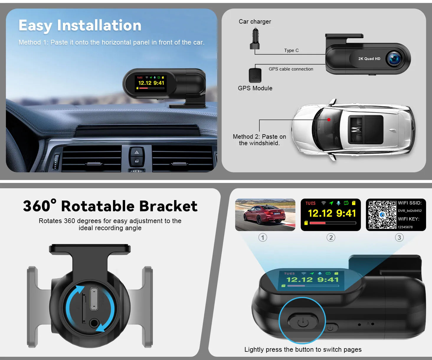 Cámara de salpicadero 2,5 K 2560*1440P coche DVR WIFI GPS cámara grabadora de vídeo Dashcam 24 horas de estacionamiento Super visión nocturna caja negra