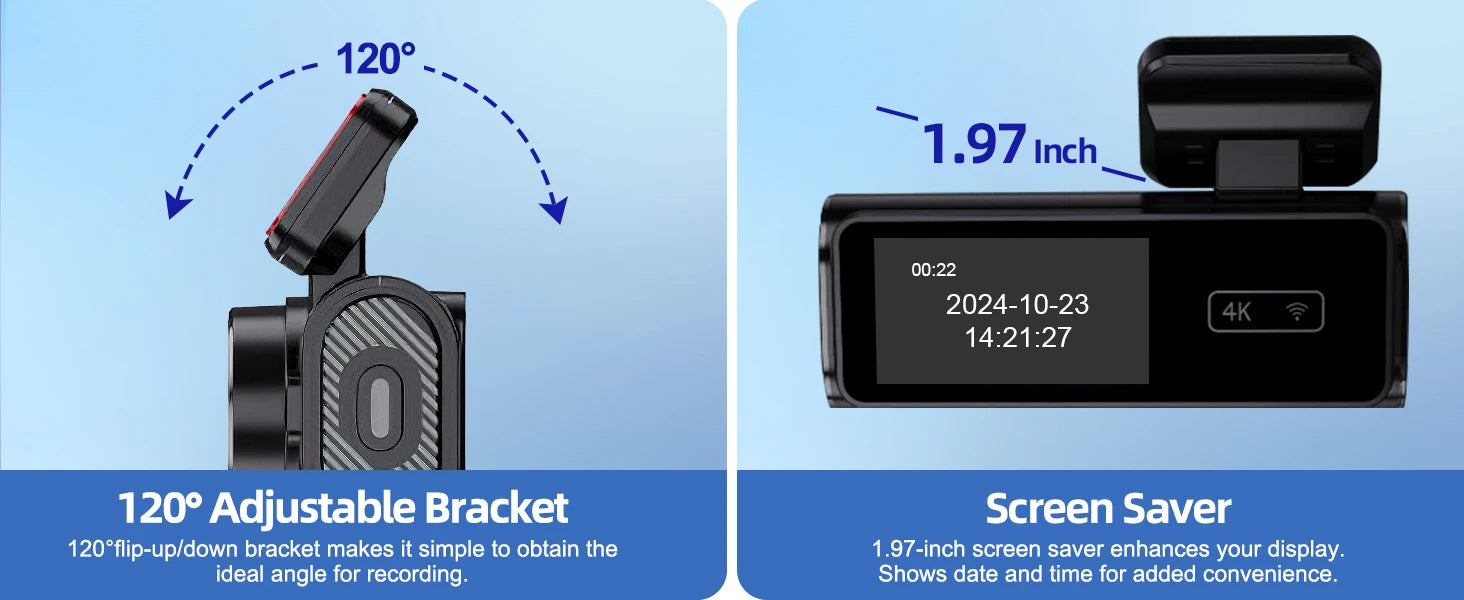 Admite grabación en bucle| Soporte de monitoreo de estacionamiento| Soporte G-Sensor| Admite conexión WIFI| Admite transmisión de voz